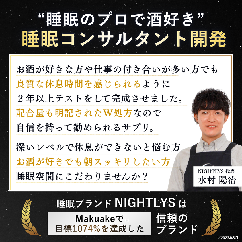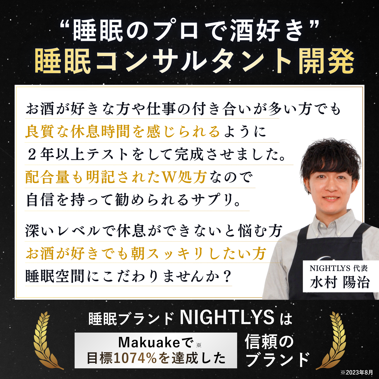 お酒好きの睡眠コンサルタントがタッグを組み、2年かけて本気で開発されました。